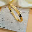 Timeless, elegant, and effortlessly chic, the Amara Crest Bracelet is a symbol of everlasting style. Crafted from high-quality 18K gold-plated stainless steel, this bangle features a sleek, polished finish with signature engraved screw motifs, adding a touch of modern sophistication. Designed for durability, it is tarnish-resistant, water-resistant, and hypoallergenic, making it a perfect everyday essential.