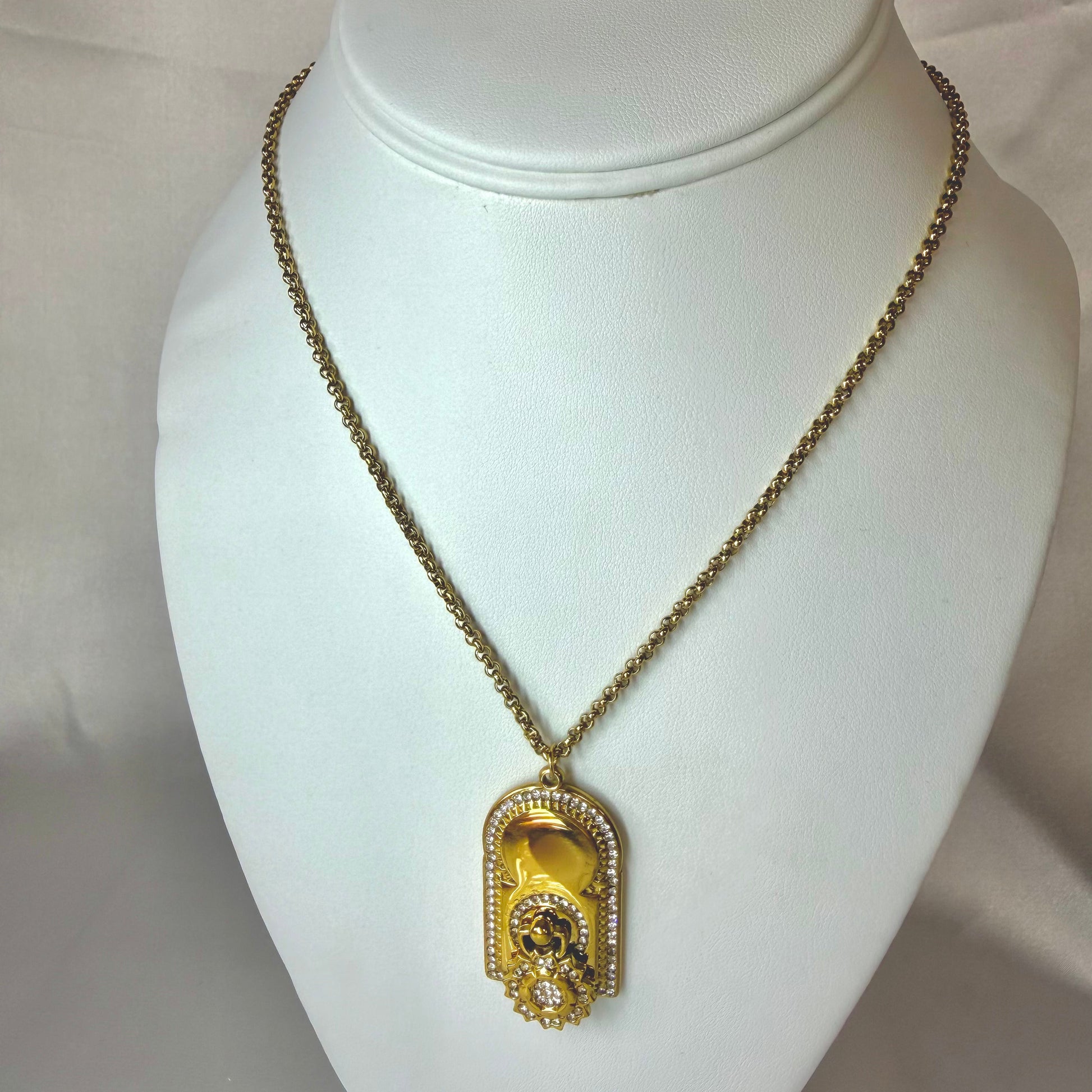 Suspended on a classic gold chain, this necklace exudes sophistication, making it perfect for both special occasions and everyday elegance.