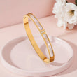 Refined elegance meets modern luxury with the Ivory Glow Bangle. This exquisite bracelet is crafted from 18K gold-plated stainless steel, featuring luminous mother-of-pearl inlays that create a soft, iridescent glow. At the center, two delicate pavé crystals add just the right touch of brilliance, making this piece effortlessly sophisticated.